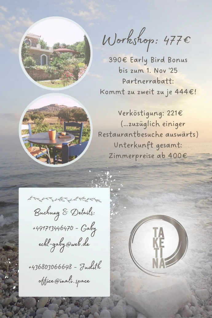 Anmeldung bei Gaby Eckl taketina@gabyeckl.com.
