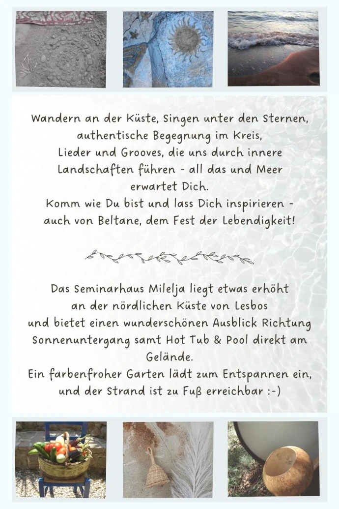 Dynamische Rhythmus Meditation * Soundjourney * Medicine Walk * Cacao * Singkreis * Küstenwanderung * Beltane auf der griechischen Insel Lesbos