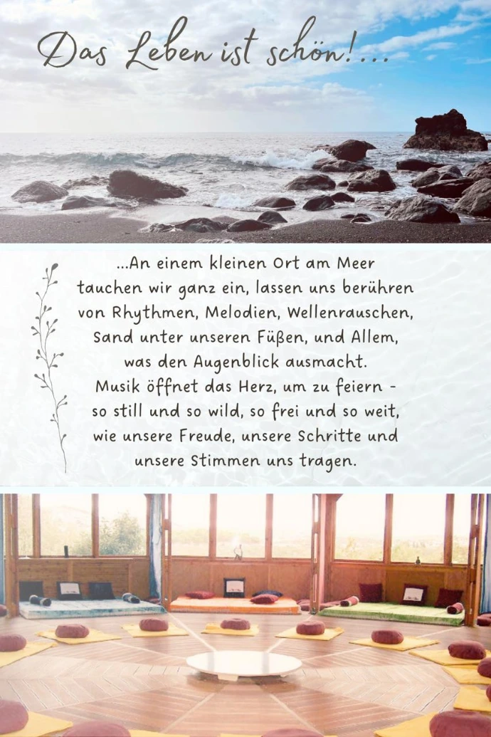 Wenn Leben Fülle bedeutet! An einem kleinen Ort am Meer tauchen wir ganz ein, lassen uns berühren von Rhythmen, Melodien, Wellenrauschen, Sand unter unseren Füßen, und allem, was den Augenblick ausmacht. Musik öffnet das Herz, um zu feiern - so still und so wild, so frei und so weit, wie unsere Freude, unsere Schritte und unsere Stimmen uns tragen. Wandern an der Küste, Singen unter den Sternen, authentische Begegnung im Kreis, Lieder und Grooves, die uns durch innere Landschaften führen - all das und Meer erwartet Dich. Komm wie Du bist und lass Dich inspirieren - auch von Beltane, dem Fest der Lebendigkeit!